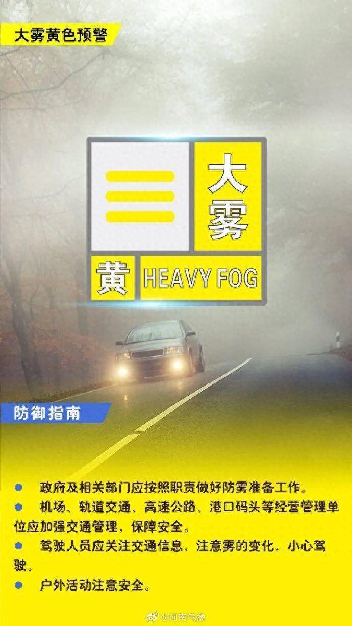 郑州市气象台2025年10月28日2时25分发布大雾黄色预警信号:预计今天凌晨到上午,郑州市主城区、航空港区、上街区所辖乡镇及街道将出现能见度小于500米的雾,局地能见度小于200米。请注意防范低能见度对交通造成的不利影响。