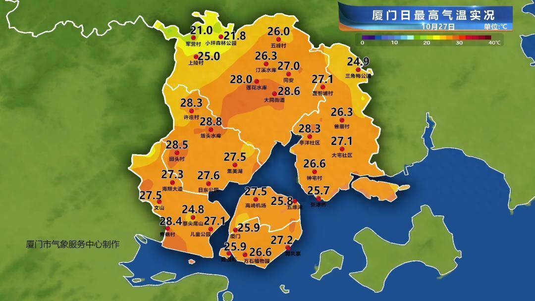 27日夜间~29日、11月1~3日厦门及海上风力持续较大,最强时段出现在27日夜间至29日白天,厦门外海最大可达6~7 级、阵风8~9级。