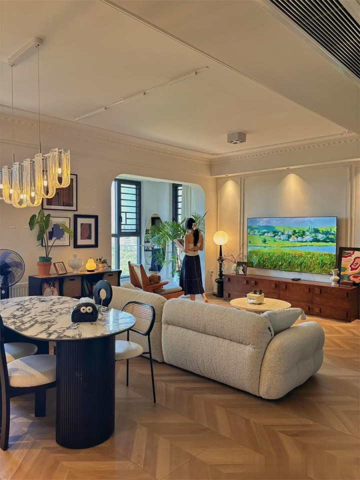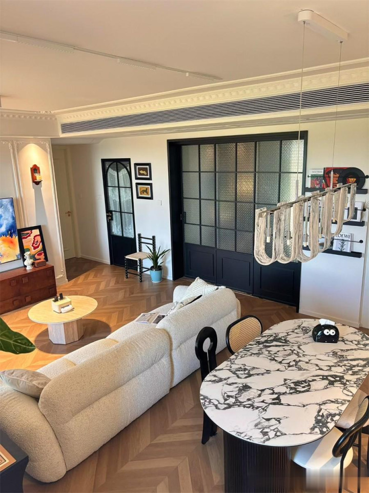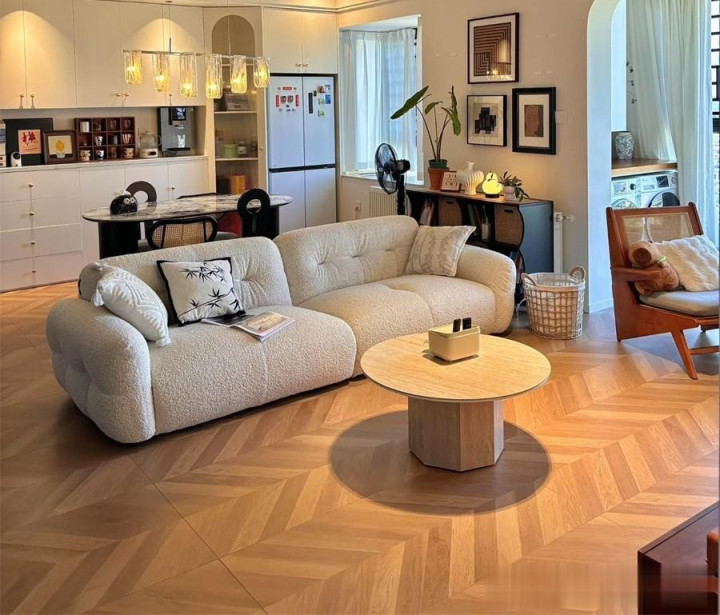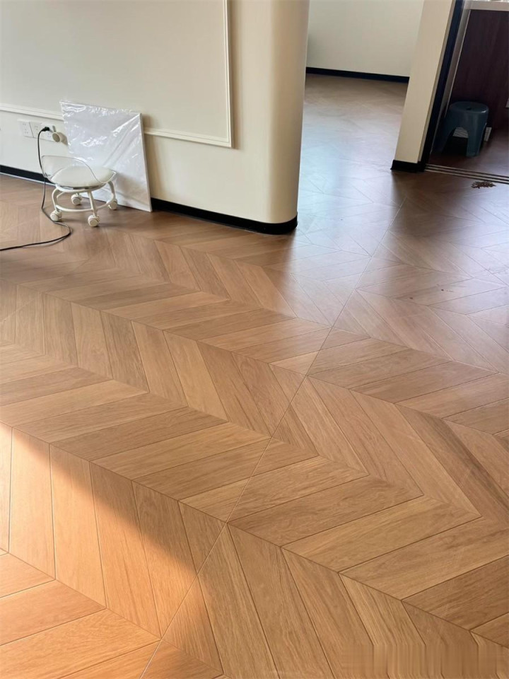 灯光设计很重要:鱼骨拼的线条感需要灯光加持,建议搭配轨道灯或线性灯,突出层次感。