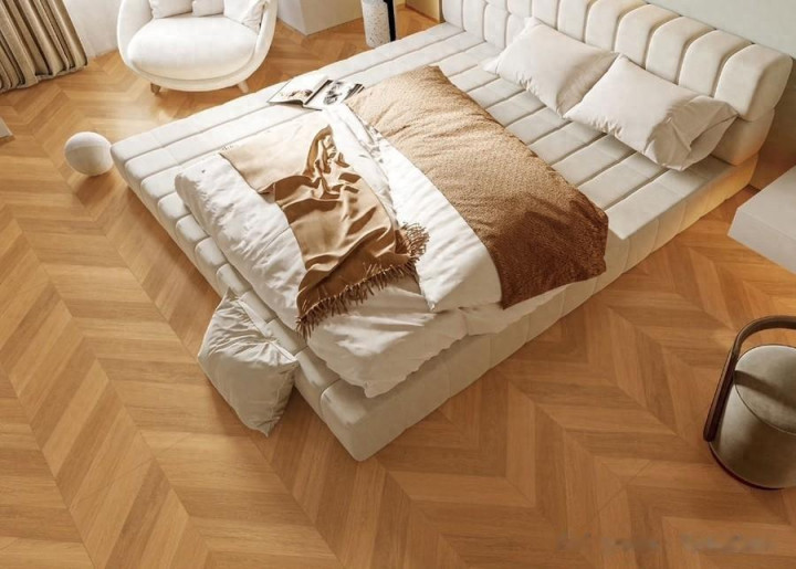 第一次在展厅看到这款木纹砖时,我的第一反应是“惊艳”。鱼骨拼的几何线条像被精心设计的艺术装置,将木纹的温润与几何的理性完美融合。